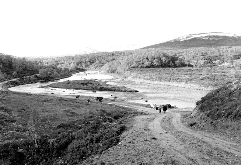 Det var mye rart som fôr - og ennå fær - etter bygdevegen. Det var sjølve livsnerva, den knytte i hop smått og stort, den fekk det tel å leva der'n drog fram. Alle hadde bruk for'n - den låg og tok imot både sørj og gle'e. Her risse onga paradisstreka sine så fort gruslaget kom fram om vår'n. Her rann dagslyset over Hammaråsen og avslørte hemmeligheter natta hadde hatt for seg - små og store fæler fylte ut hjulgangen der en jentesko hadde vår-natt-trippe ved sida tå en beksøm. Det var peneste pynten bygdevegen hadde i hele året - tripper og en stans vart tel lenkjer og e perle.